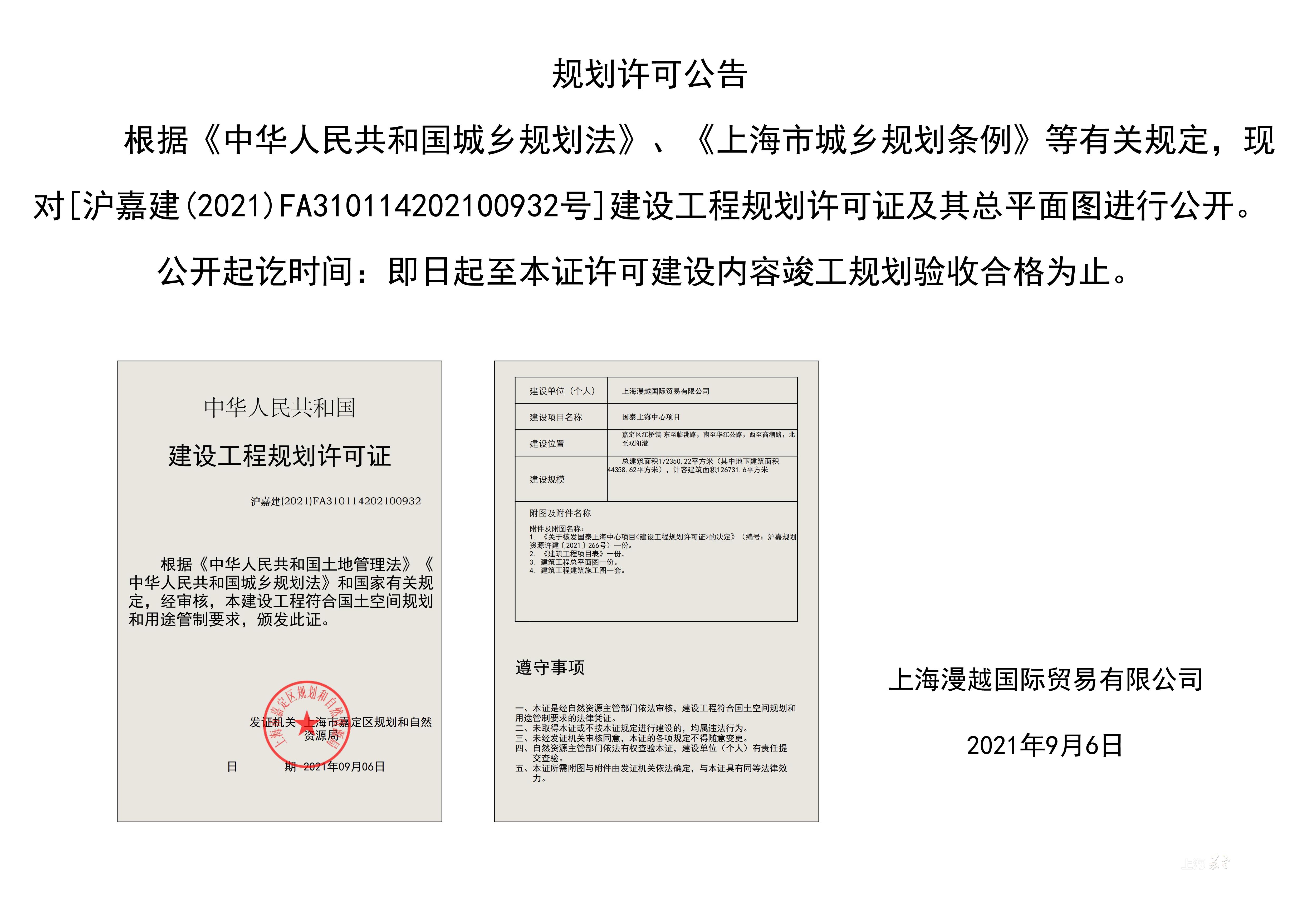 沪嘉建(2021)FA310114202100932规划许可公告(上海漫越国际贸易有限公司)