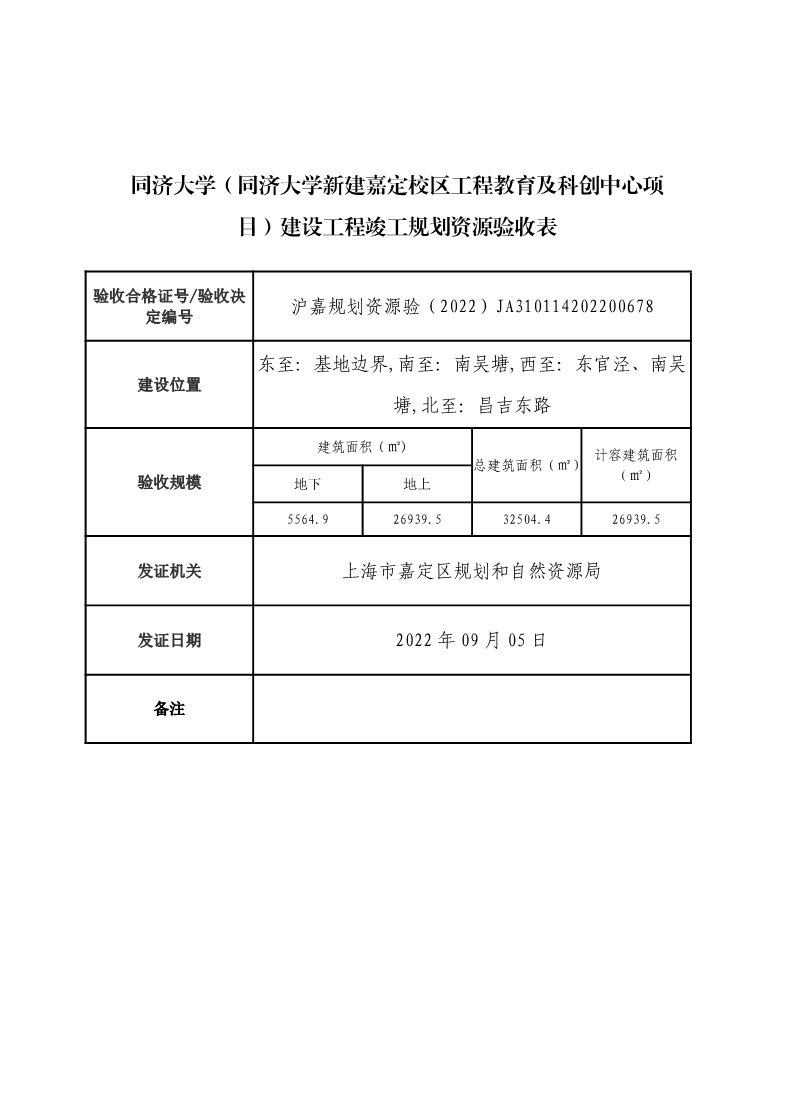 沪嘉规划资源验(2022)JA310114202200678竣工规划资源验收表(同济大学)