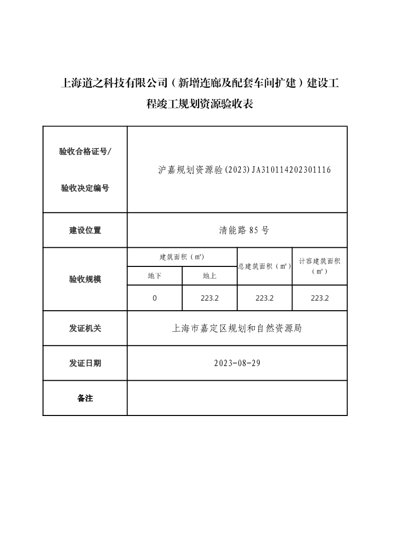 沪嘉规划资源验(2023)JA310114202301116竣工规划资源验收表(上海道之科技有限公司)