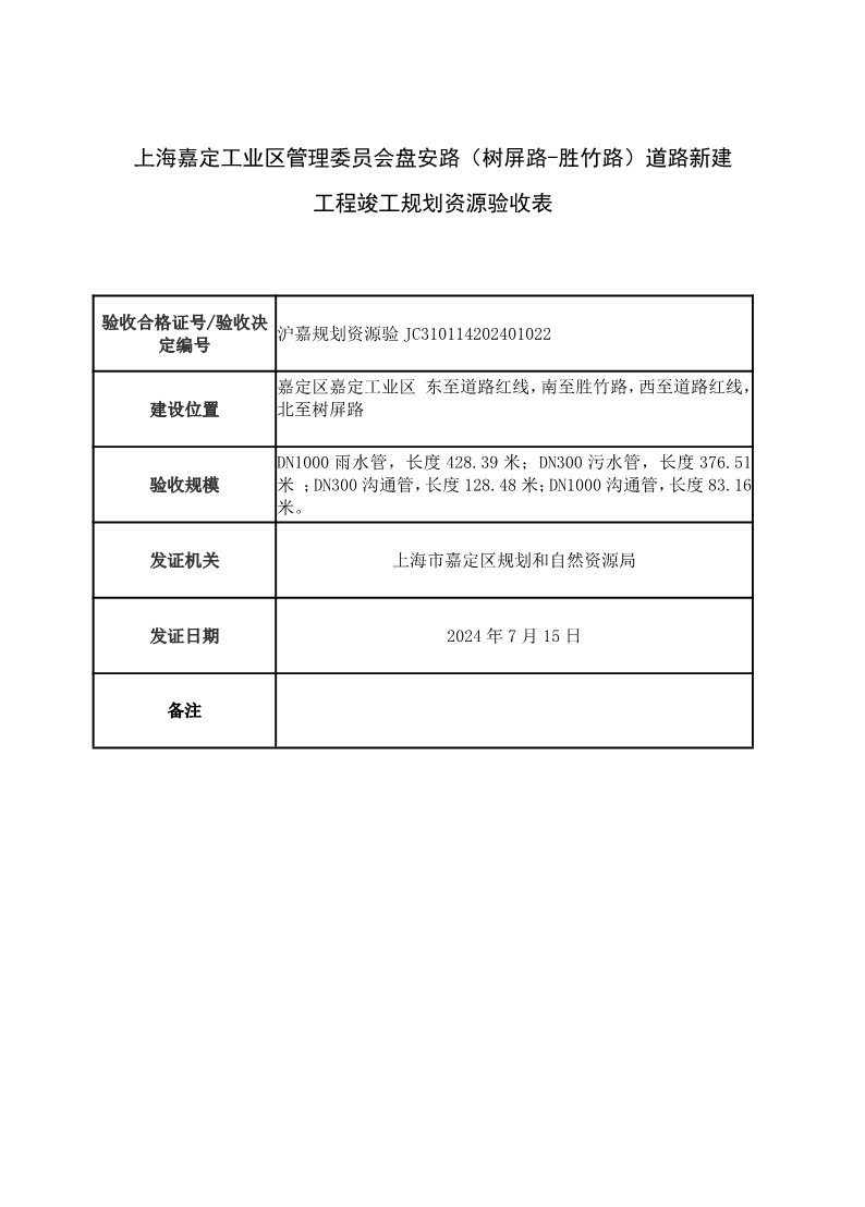 沪嘉规划资源验(2024)JC310114202401022竣工规划资源验收表(上海嘉定工业区管理委员会)