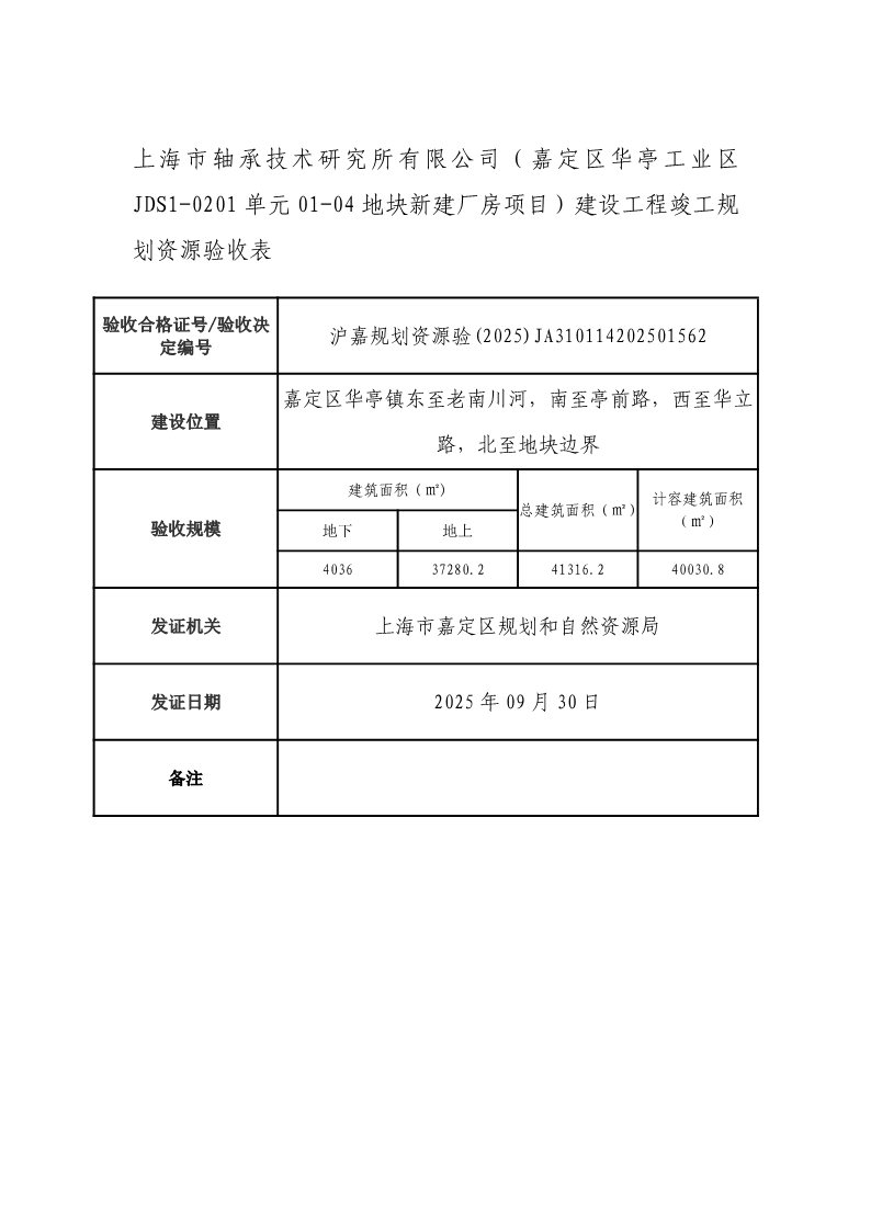 沪嘉规划资源验(2025)JA310114202501562竣工规划资源验收表(上海市轴承技术研究所有限公司)