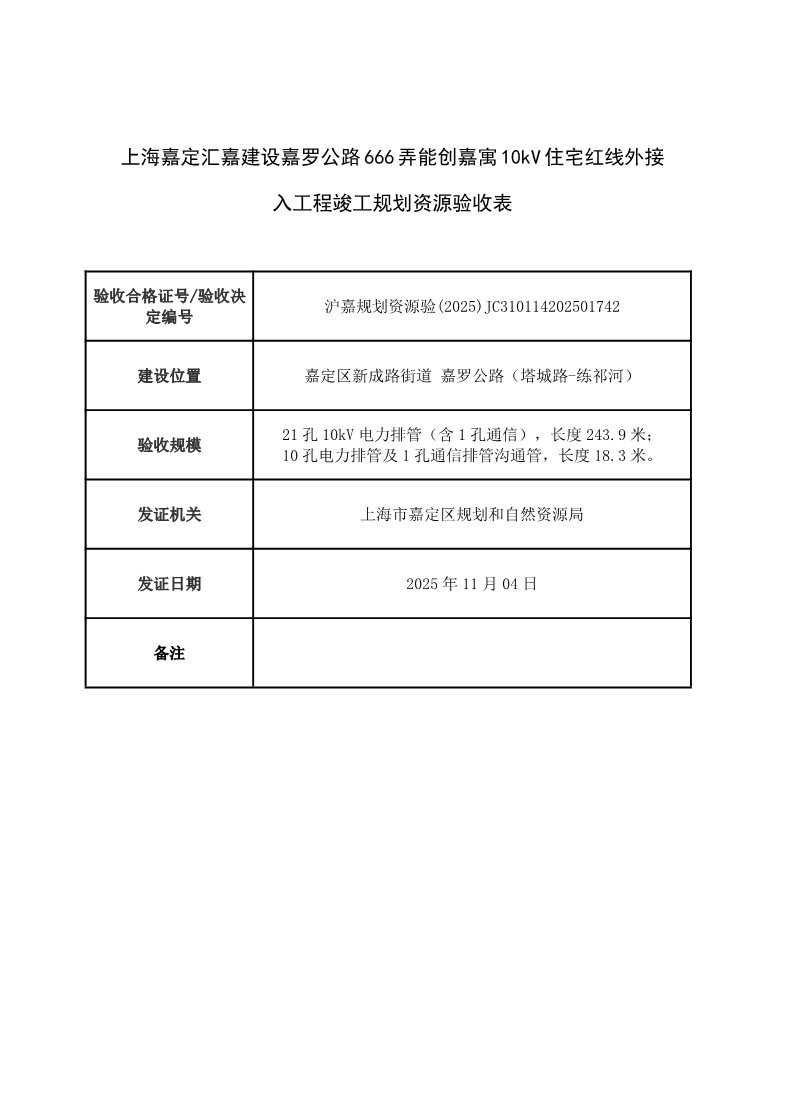 沪嘉规划资源验(2025)JC310114202501742竣工规划资源验收表(国网上海市电力公司嘉定供电公司)