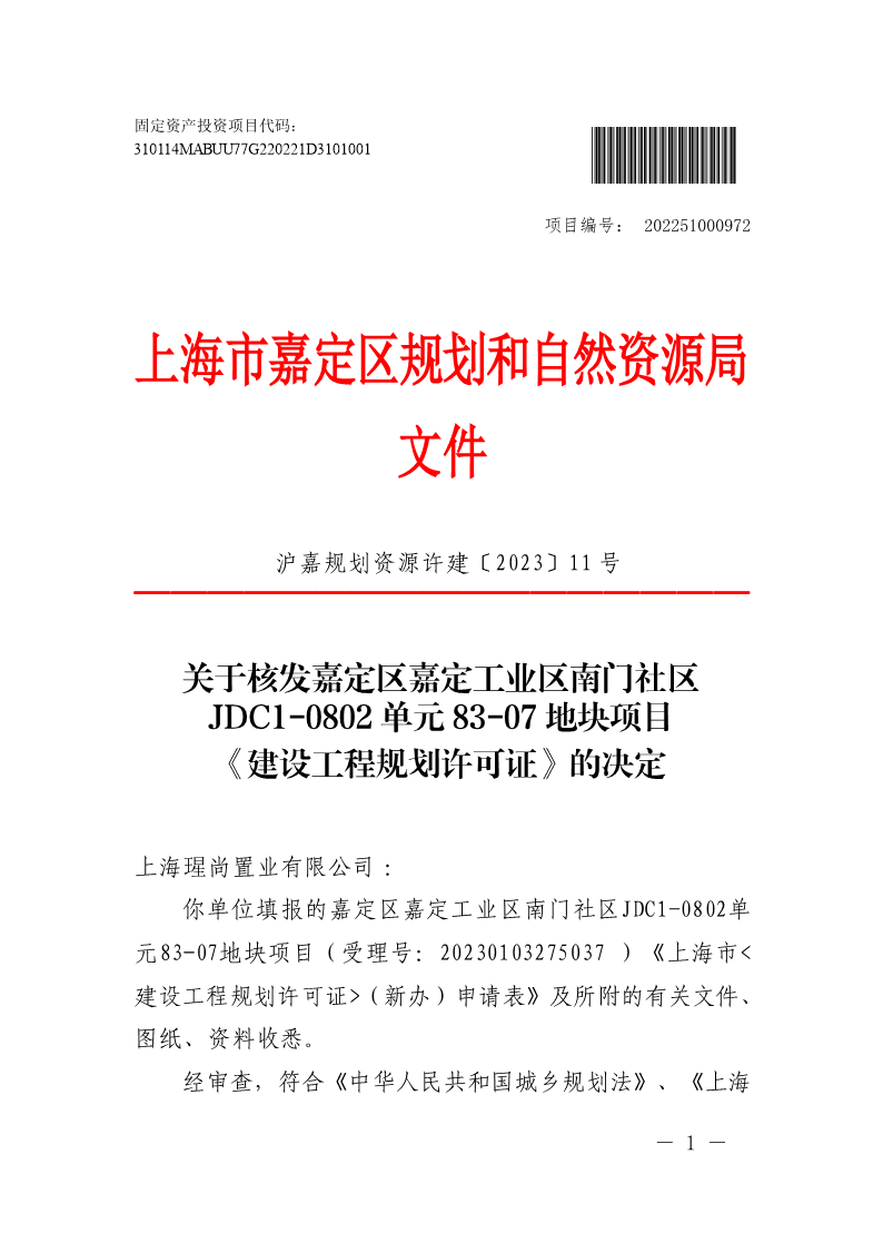 索引号: 00001434-9/2025-00000325 发布机构: 区规划资源局 发文日期: 2025年09月01日 主题分类: 依申请转主动公开文件 关键词: 星尚观澜世嘉 上海瑆尚置业有限公司 嘉定南门社区JDC1-0802单元83-07地块 建设工程规划许可证的决定及项目表 发布时间:2025-09-01 浏览次数: 次 【字体:小 大】